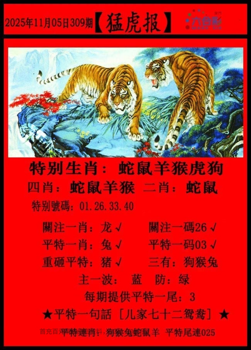 | 311期:澳门赢彩【四肖平特】请关注料